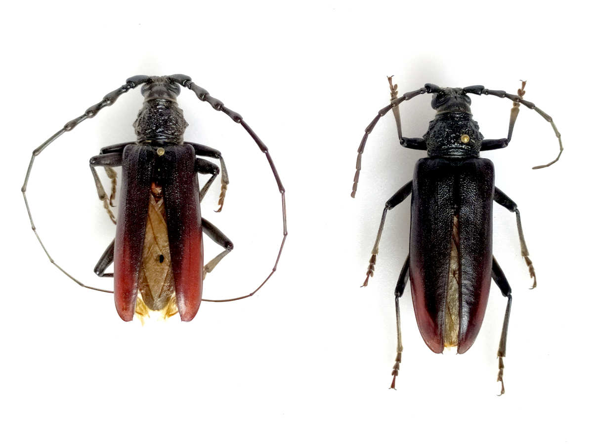 Es común que cuando se encuentra un adulto de Cerambyx de gran tamaño sea atribuido a C. cerdo. Cuenta además con numerosas citas en la literatura científica. De hecho, si buscas en la bibliografía parece como si C. cerdo predominara por encima de C. welensii. En este punto, me da la sensación que podría suceder lo contrario y que C. welensii fuera más común, por lo menos en la zona en la que vivo en el noreste de la península [2]. No es fácil encontrar Cerambyx, ya que completan su ciclo en bosques maduros con árboles del género Quercus. Es cierto que en esta parte de la península ha aumentado mucho la masa forestal desde hace medio siglo por el abandono de tierras de labranza. Pero también es cierto que son bosques jóvenes y poblados por conífera.