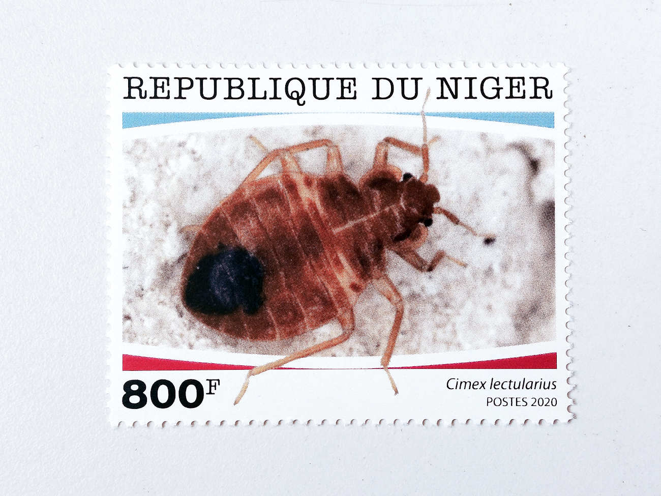 Como apuntaba son pocas las especies con incidencia urbana a las que se dedican sellos. Por supuesto, el hecho de que en 2020 el servicio postal de Níger dedicada uno a la chinche de cama indica dos cosas. Por un lado, de manera global se muestra el creciente impacto de esta especie que ha tenido en las dos últimas décadas. Y por otra, de manera local se entiende la gran presencia de la chinche de cama en las viviendas de Níger. Esto es atrevido y da muestra de la problemática. No imagino en la actualidad que en España se le dedicara un sello a la chinche de cama. Y eso que he constatado como ha pasado de ser un insecto desconocido a ser uno que a todo el mundo le suena y muchos saben de algún conocido que tuvo una infestación. En la pasada década, lo normal era que las personas que se encontraban con una infestación de chinches no supieran de qué insecto se trataba al encontrarlo en su cama. Y eso si lo encontraban, porque lo normal era padecer sus picaduras sin saber el origen. Algunos pensaban que se trataban de mosquitos. Conozco diversos casos en los que el médico del ambulatorio atribuyó las picaduras a sarna humana (Sarcoptes scabiei). Hoy en día, por suerte no me encuentro con esa situación. Además, quien no sepa qué insecto es el que le amarga las noches o llena su cuerpo de picaduras puede recurrir a internet que le explicará rápido de qué se trata.
