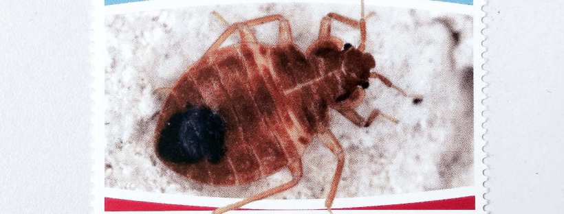 Cuando busco sellos dedicados a artrópodos, encuentro pocos sobre plagas urbanas y vectores de enfermedades. Sí en cambio, hay más sobre plagas del campo debido a su considerable impacto sobre las cosechas. Y en los pocos que encuentro sobre insectos de incidencia sobre las personas abundan los dedicados a mosquitos, lo cual es lógico porque es el artrópodo de mayor incidencia sobre la salud. Sin embargo, no había encontrado hasta ahora uno dedicado a la chinche de cama (Cimex lectularius).