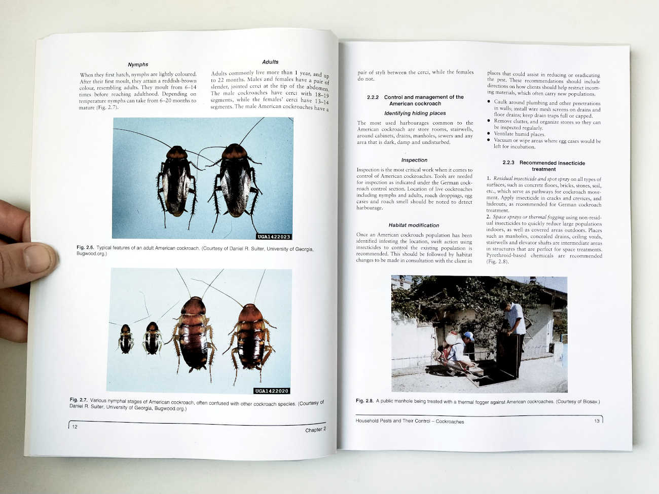 Destacaría el primer capítulo porque el autor expone la filosofía que debería guiar un buen servicio de control de plagas. Algunas ideas son: desarrollar las habilidades y conocimientos de los técnicos, potenciar la inspección y monitorización o la búsqueda de la sostenibilidad. Esto último implicaría una voluntad de seguridad, responsabilidad, menor uso de plaguicidas y uso de alternativas. He de apuntar que el autor tiene su base de operaciones entre India y Filipinas. Teniendo en cuenta el clima y desarrollo económico de ambos países, se deduce que los técnicos realizan muchas más aplicaciones insecticidas mediante pulverizaciones y nebulizaciones que las que realizamos nosotros en Europa. En este punto, tenemos una mentalidad más avanzada gracias a lo que nos pide la sociedad.