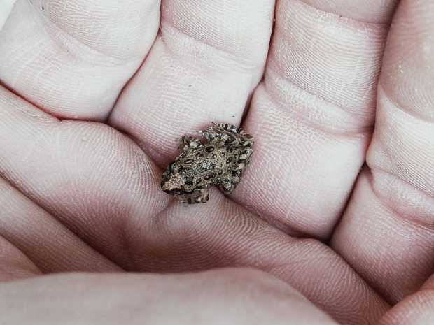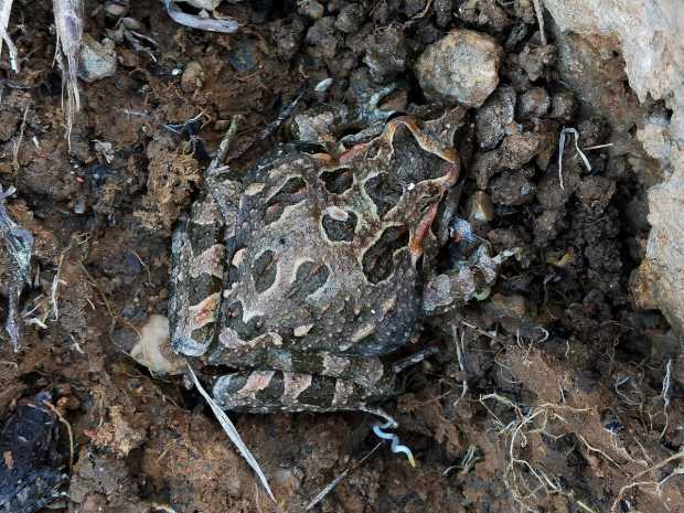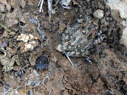 Hace unos días, estuve inspeccionando el descampado en busca de micromamíferos. De hecho, meses atrás capturé vivo un ejemplar de ratón moruno (Mus spretus). En el descampado pude ver lo que parecían entradas a madrigueras de este ratón, pero también acumulaciones de tierra de topillo mediterráneo (Microtus duodecimcostatus). Parece que estas dos especie han quedado un poco aisladas en medio del polígono industrial. Y fue en esta inspección cuando al levantar algunas grandes piedras descubrí ejemplares de sapillo pintojo mediterráneo. Encontré un adulto (figuras 2-3) y numerosos juveniles (figuras 4-6).