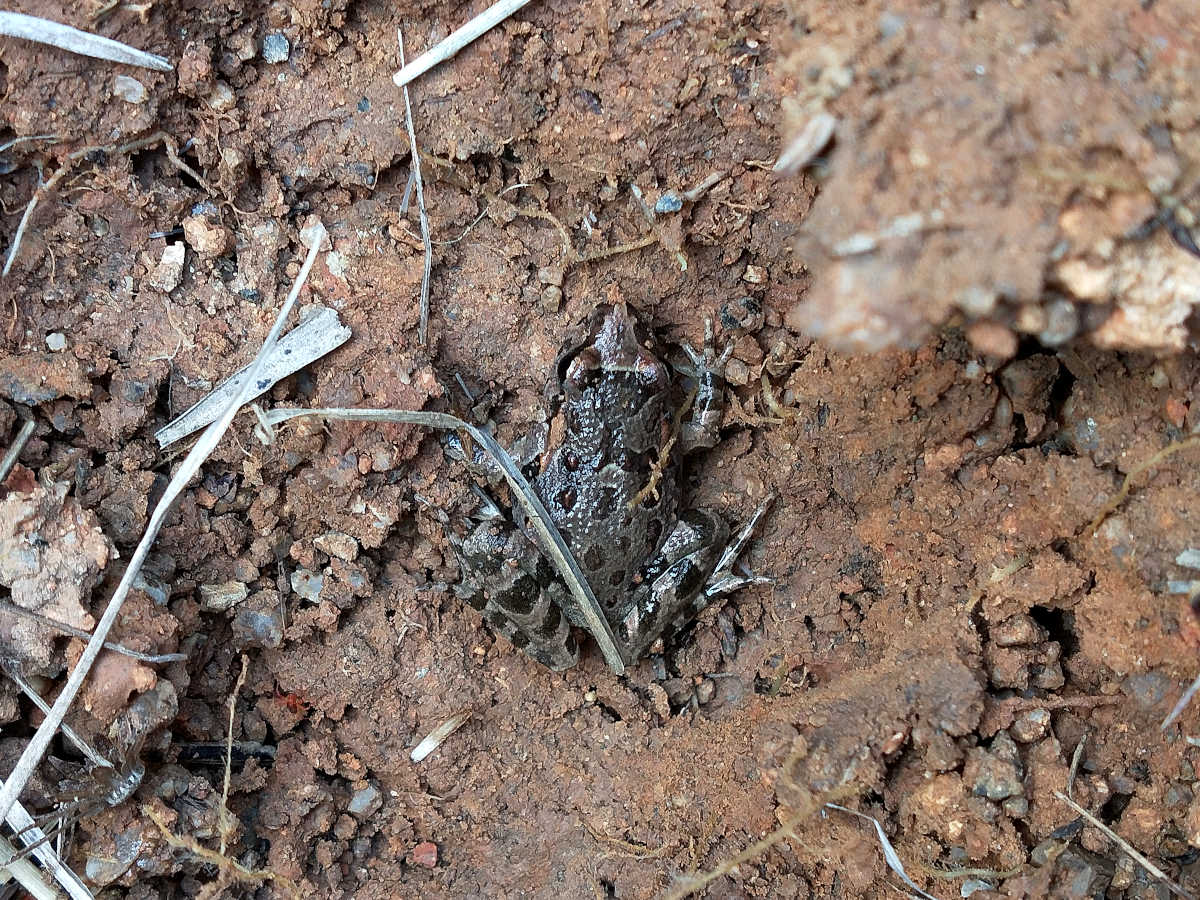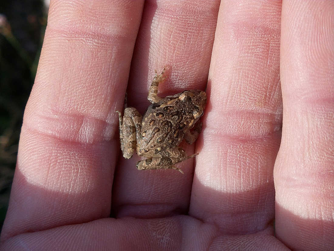 Hace unos días, estuve inspeccionando el descampado en busca de micromamíferos. De hecho, meses atrás capturé vivo un ejemplar de ratón moruno (Mus spretus). En el descampado pude ver lo que parecían entradas a madrigueras de este ratón, pero también acumulaciones de tierra de topillo mediterráneo (Microtus duodecimcostatus). Parece que estas dos especie han quedado un poco aisladas en medio del polígono industrial. Y fue en esta inspección cuando al levantar algunas grandes piedras descubrí ejemplares de sapillo pintojo mediterráneo. Encontré un adulto (figuras 2-3) y numerosos juveniles (figuras 4-6).