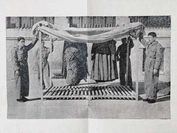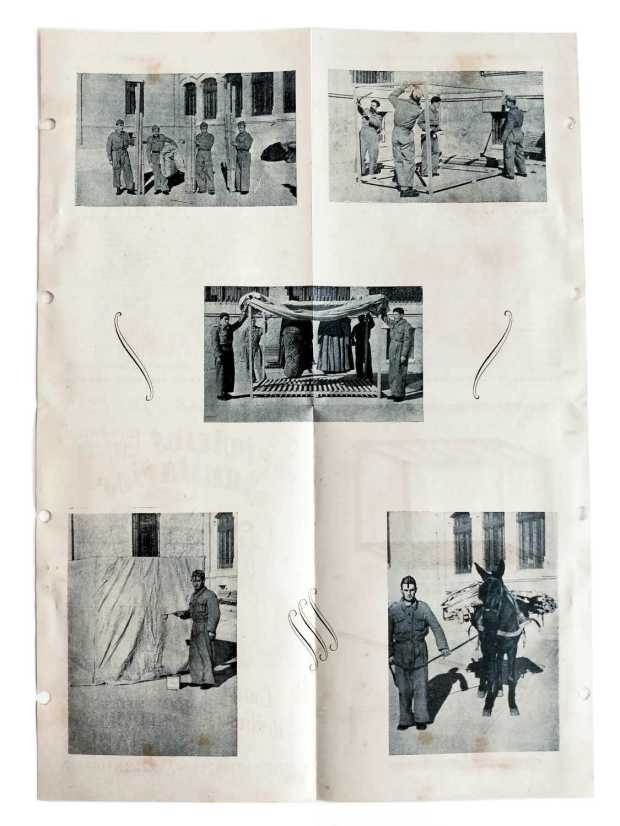 Como se puede ver en las imágenes, la cámara portátil es comercializada por Servicios Sanitarios de Valencia. Consta como diseño protegido por dos patentes, 168355 y 169423. No he encontrado información alguna sobre una empresa de desinfección con esta denominación. Respecto a la datación, este folleto debió de ser publicado en torno a 1940.