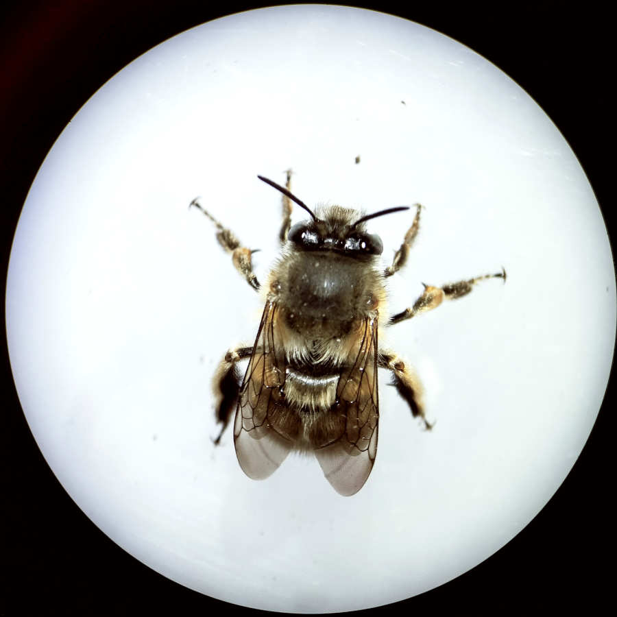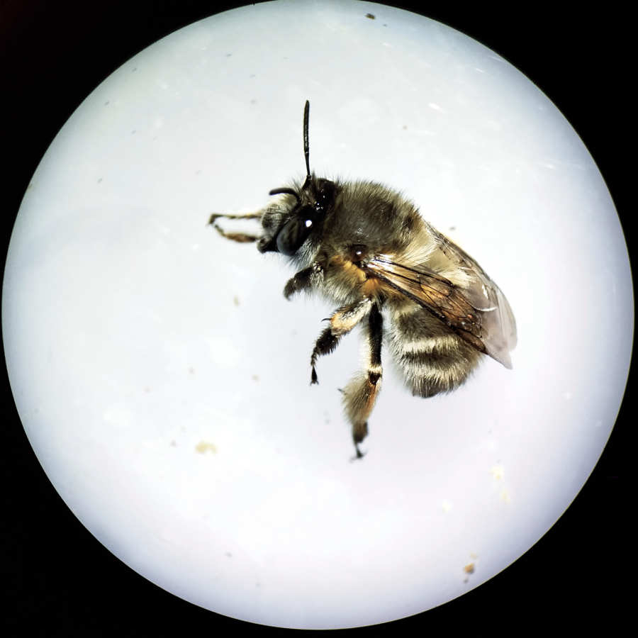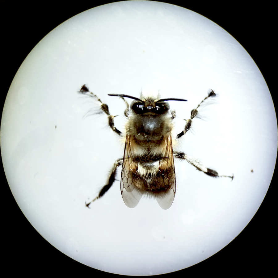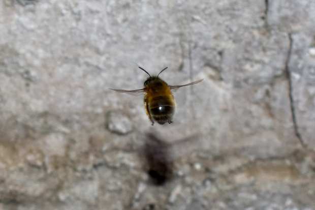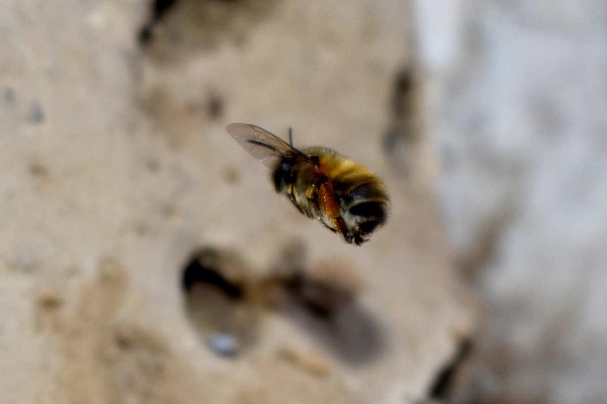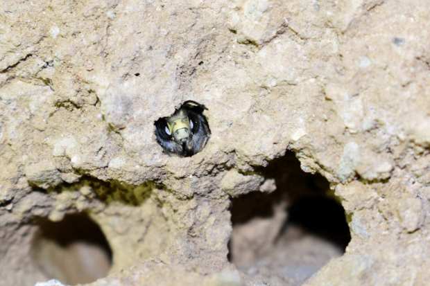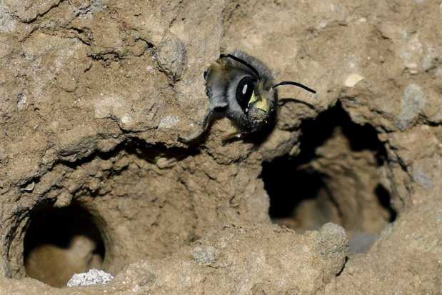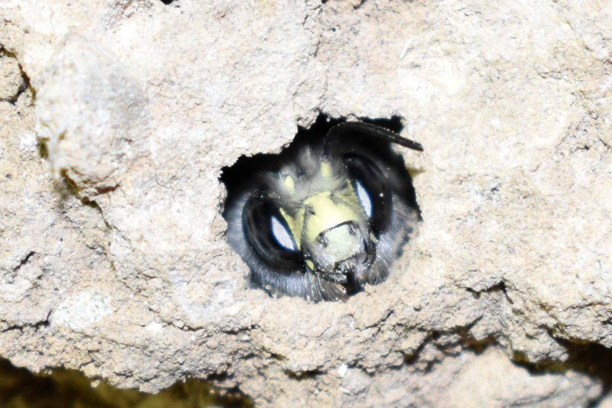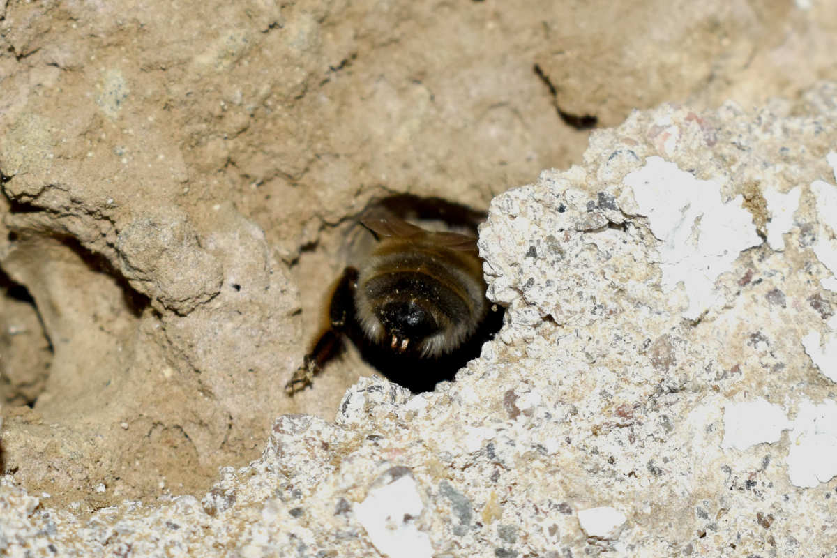 En la ‘Guía de campo de las abejas de España’ de Molina y Bartomeus [1], hay una ficha dedicada a esta especie. Se indica su tamaño como medio de 1’5 a 2 cm de longitud aproximadamente. Se trata de abejas solitarias activas de febrero a mayo. La especie es común y tiene una amplia distribución por la Península Ibérica. En cuanto a su nidificación, estos autores indican que es «en el suelo, taludes preferiblemente de suelos arcillosos o arenosos que estén bien soleados». En lo que se refiere a taludes arcillosos, la pared de adobe cumple con ello. Pero en cuanto a taludes soleados, evidentemente no. La pared donde las hembras construyen las celdas para la crianza no se encuentra expuesta al sol.