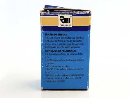 Como apuntaba antes, en España fue QUIMUNSA el primer fabricante en comercializar un rodenticida con alfacloralosa. Buscando en documentos, he encontrado tres productos de esta empresa de la década de 1990. En la ‘Guía de plaguicidas utilizados en higiene alimentaria y salud pública’ de 1998 [4], constan estos cebos con alfacloralosa al 3%: MURI-TOPOS (98-10-01401), MURICOR RATONES (98-10-01489R) y MURICOR RATONES BLOQUES (98-10-01490). Ahora bien, MURICOR RATONES tiene la letra R en el número de registro, lo cual significa que era un producto reclasificado de uso ambiental. Un producto reclasificado tenía una validez de tres años y se aplicaba a aquellos productos que estaban escritos anteriormente en el antiguo registro de la Dirección General de Farmacia y Productos Sanitarios. En consecuencia el producto más antiguo es MURICOR RATONES formulado en grano y servido en bolsitas de 25 gramos en bolsas de 10 kg.