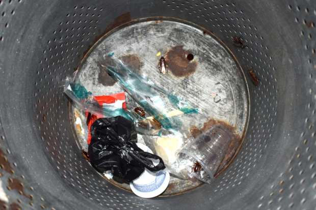 En la rambla las cucarachas tomaron las plantas, los troncos de los arboles y abundaban en el suelo de las jardineras. Pero no solo eso, sino que se metían en las papeleras buscando alimento (figs 25-29). Como dato curioso es que las vi volar. Primero vi una cucaracha que volaba a unos cuatro o cinco metros del suelo y atravesaba toda la rambla. Lógicamente no sabía si se trataba de una cucaracha australiana o una americana. Sin embargo, hubo un momento en el que me acerqué a una cucaracha australiana para tomar una fotografía. Se encontraba en el suelo de la rambla. Y entonces alzó el vuelo para pasar al otro lado y aterrizar sobre unas plantas. La temperatura ambiental en ese momento era de 20-22ºC. Imagino que con mayor temperatura a finales de julio será más fácil verlas volar, lo cual ayuda en su dispersión.