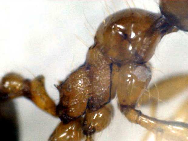 Le pedí si podía tomar algunas fotografías de alguna obrera para saber de qué especie se trataba. Y por la tarde me envió unas buenísimas fotos de detalle (figuras 2-5). Y con ello pude ver que se trataba de Pheidole indica, cosa que me sorprendió. He dedicado algunas entradas a esta especie que recientemente encontré en el Puerto de Barcelona [1]. Se trata de una especie exótica de origen tropical. Por tanto, encontrarla en Lleida sorprende, ya que tiene clima continental con veranos muy calurosos e inviernos fríos. Xavier me explicó que la vivienda está rodeada por una parcela con jardín muy regado. Esto sería una explicación.