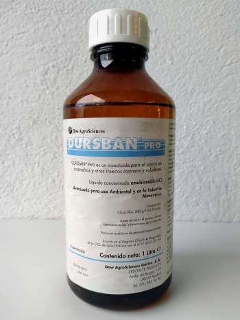 En tercer lugar fue comercializado DURSBAN PRO, formulado con clorpirifos al 28’5%. Tiene número de registro 97-30-01351 HA. Fue también un producto utilizado y reconocido. En esta entrada se pueden ver imágenes de unos envases que he encontrado y que estaban destinados a la destrucción.