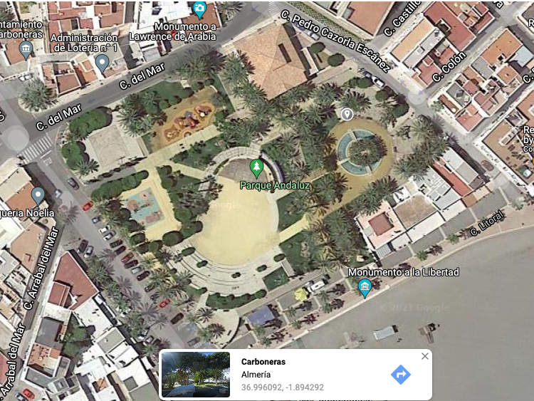 A principios del presente mes de octubre, estuve en Almería. Dormí en Carboneras, una población costera que no conocía y de la que me llevé un grato recuerdo. En una inspección nocturna para curiosear qué especies había, tuve la suerte de encontrar un grillo topo (Gryllotalpa) en un parterre de una zona ajardinada (figura 1). Esto fue junto a una palmera en el Parque Andaluz (figura 2). Es la primera vez que veo uno vivo, porque en anteriores ocasiones he visto ejemplares muertos que me han llegado. No es un insecto muy ágil, por lo que pude capturarlo sin problema.