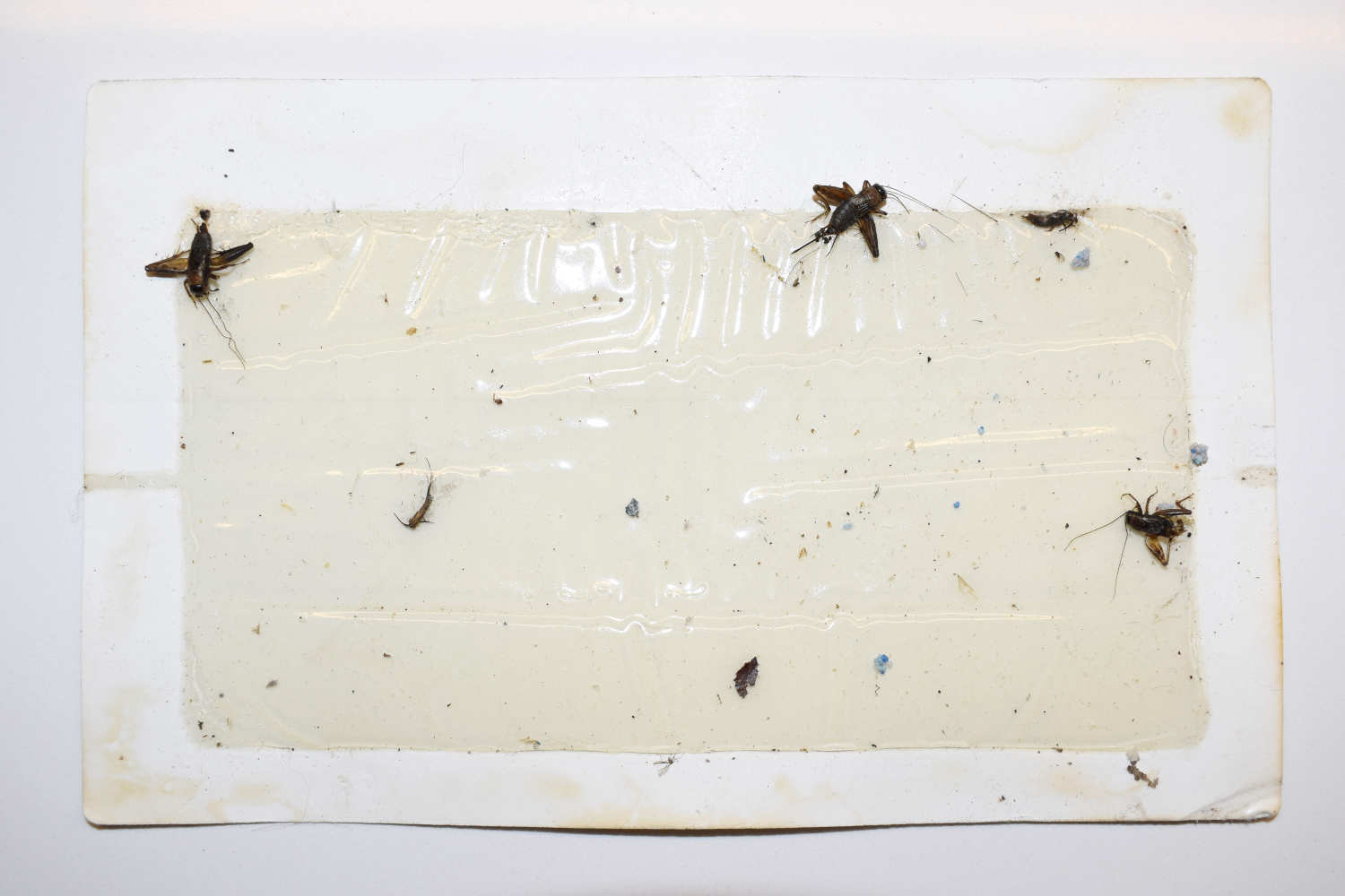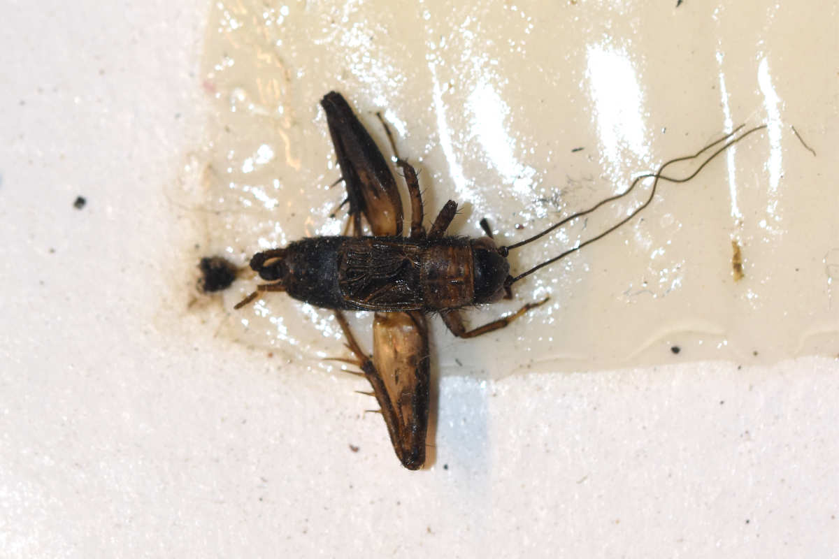 En trampas adhesivas colocadas el pasado mes de septiembre en un cliente nuevo, encontré grillos de la especie Nemobius sylvestris. Estas capturas fueron en trampas situadas cerca de puertas de entrada. Este grillo no es plaga. Sencillamente se trata de una situación en la que una especie es común en el exterior y hace su aparición ocasional en interiores. Encuentro interesantes los grillos por su facilidad para vivir alrededor de edificios. Conocido es el caso del grillo doméstico, Acheta domesticus, y también, aunque menos, el del grillo Gryllodes supplicans, especie en expansión que descubrí en las calles de Santa Cruz de Tenerife [1]