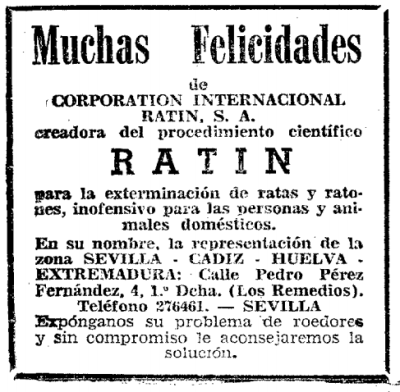 Hace tiempo que hago acopio de materiales sobre Corporación Internacional Ratin SA, conocida por el acrónimo de CIRSA. Fue una compañía destacada en el control de plagas en España durante las décadas de 1960 a 1980. Pero más en concreto, fue una compañía especializada en la desratización. Desarrolló una metodología propia llamada Sistema Ratin.