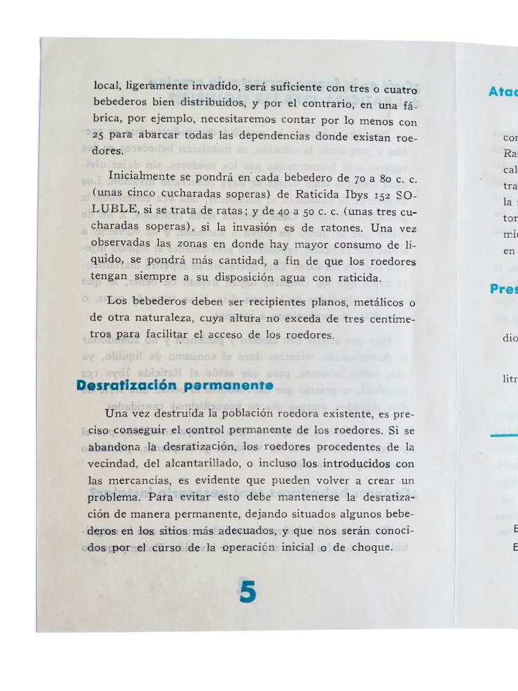 – Instituto IBYS. Raticida IBYS 152. Instituto de Biología y Sueroterapia SA, Madrid. 40 pp. Depósito legal M.7197-1960. 20×15 cm.