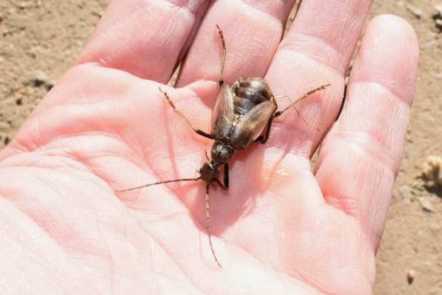 Destacan los cortos élitros de la hembra. De hecho, a simple vista parece más una especie de la familia Meloidae que no de Vesperidae (antes subfamilia Vesperinae dentro de Cerambycidae). Esta duda no la tendríamos al ver el macho, ya que tiene todo el aspecto de un longicornio con sus largas antenas sobrepasando el cuerpo (figura 3). La hembra es de tamaño mayor. La que encontré pasaba de los 30 mm de longitud. El macho de Vesperus xatarti mide 18-30 mm de longitud frente a 22-35 mm de la hembra, según el manual sobre cerambícidos de Eduard Vives [1]. Es la especie de mayor tamaño de las 10 que se encuentran en la Península Ibérica y Baleares.
