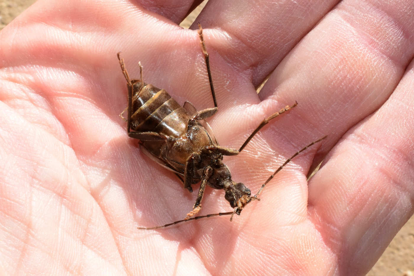 Destacan los cortos élitros de la hembra. De hecho, a simple vista parece más una especie de la familia Meloidae que no de Vesperidae (antes subfamilia Vesperinae dentro de Cerambycidae). Esta duda no la tendríamos al ver el macho, ya que tiene todo el aspecto de un longicornio con sus largas antenas sobrepasando el cuerpo (figura 3). La hembra es de tamaño mayor. La que encontré pasaba de los 30 mm de longitud. El macho de Vesperus xatarti mide 18-30 mm de longitud frente a 22-35 mm de la hembra, según el manual sobre cerambícidos de Eduard Vives [1]. Es la especie de mayor tamaño de las 10 que se encuentran en la Península Ibérica y Baleares.