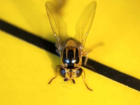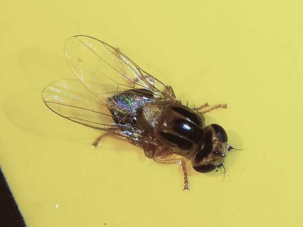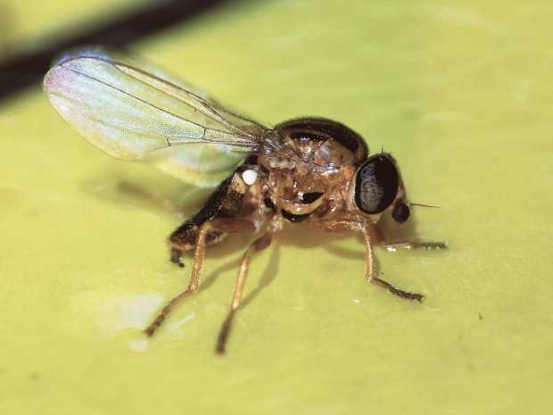[2] Marion Kotrba. 2009. Male flies with yellow balls – New observations on the eversible vesicles on the postabdomen of male Thaumatomyia notata (Diptera: Chloropidae). European Journal of Entomology, 106 (1): 57-62.
