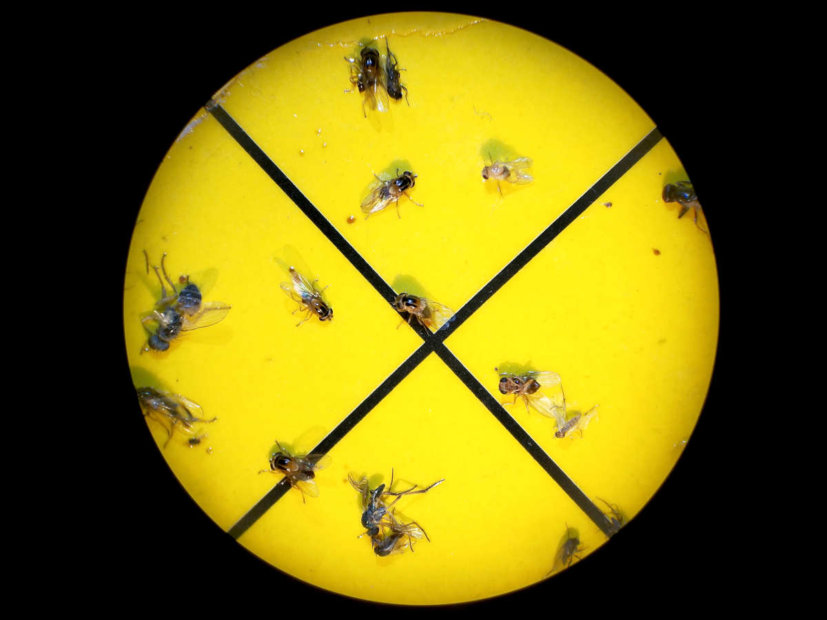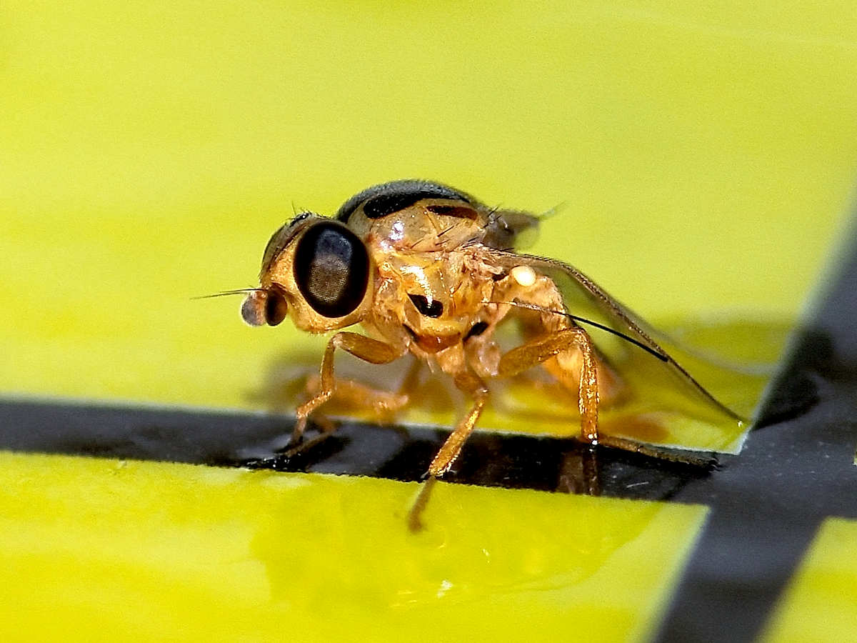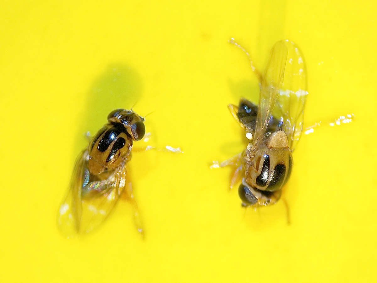 [2] Marion Kotrba. 2009. Male flies with yellow balls – New observations on the eversible vesicles on the postabdomen of male Thaumatomyia notata (Diptera: Chloropidae). European Journal of Entomology, 106 (1): 57-62.