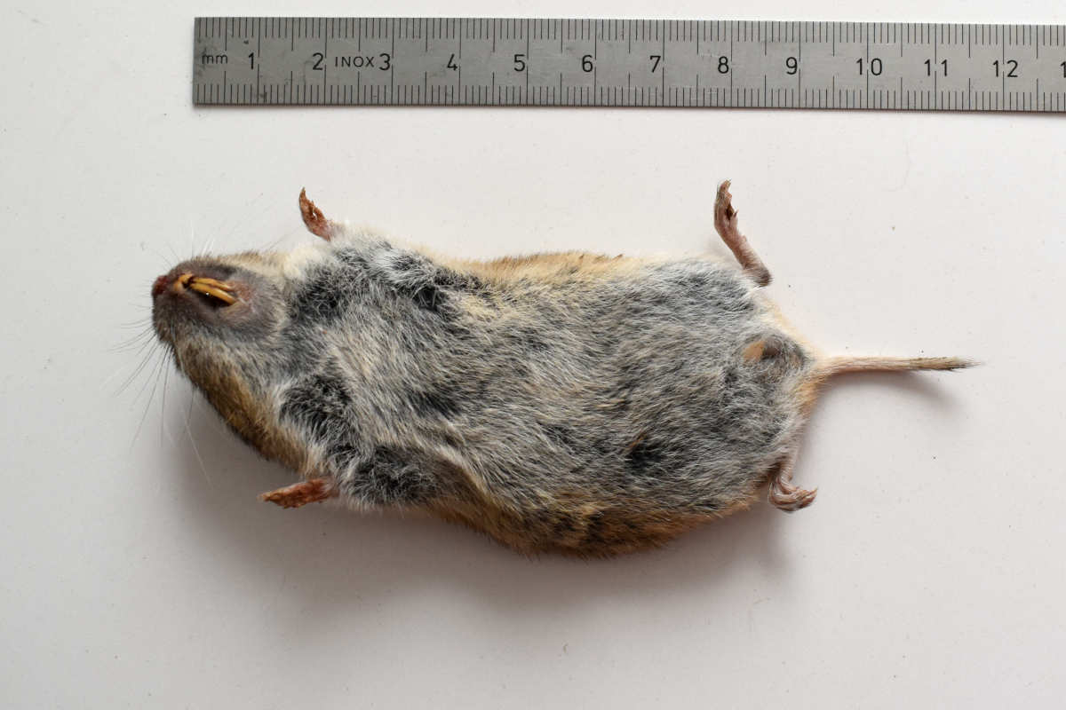 Fig 14. Vista ventral de topillo mediterráneo (Microtus duodecimcostatus)./ C. Pradera 10-2019