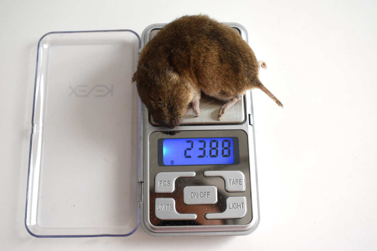 Fig 16. Peso de un topillo mediterráneo (Microtus duodecimcostatus)./ C. Pradera 10-2019