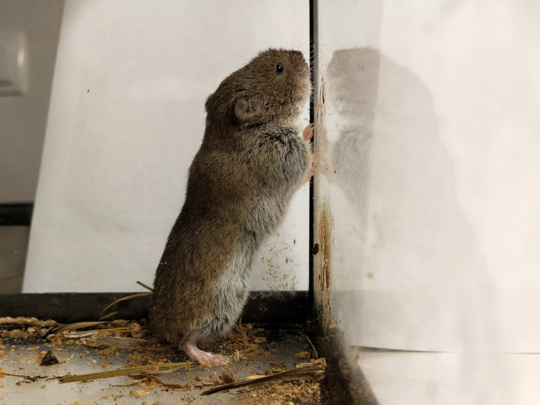 En mayo de 2019 encontré un joven topillo mediterráneo (Microtus duodecimcostatus) atrapado en una trampa mecánica que tenía situada en el interior de un polideportivo de una población de la comarca de Osona, Barcelona. La trampa estaba en un pasillo cerca de una puerta. Y el polideportivo quedaba a unos 100 metros de zonas ajardinadas donde había colonias de topillos. Lo rescaté como pude y me lo llevé para observarlo. Lo puse en la oficina en un terrario grande con agua y alimento. Luego le tomé cariño y me lo llevé a casa. A día de hoy, sigue sano. Es un animal precioso (figuras 1-3). Debió de nacer a principios de la primavera de 2019, lo cual me hace pensar que tiene tres años de vida.