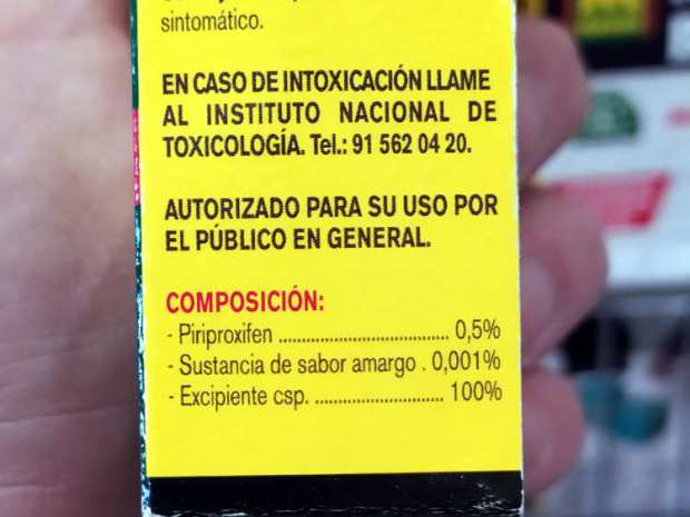 Me sorprendió que este producto estuviera a la venta porque en la actualidad no está autorizado contra larvas de mosquito (Culicidae). Tenía claro que el producto estaba caducado. Alguien no habría informado al establecimiento. Quizás tuvieran suficiente producto en el almacén como para ir reponiendo. Miré el envase con atención. En el lateral de la caja figuraba el número 07-30-00072 del Registro Oficial de Plaguicidas (ROP). Esto indica que la renovación del producto se produjo en 2007. Como sabemos, cada cinco años se procede a la renovación de la autorización de un producto inscrito en el ROP. Sin embargo, Sumilarv 0.5G estuvo vigente unos años más allá de 2012 debido a que el piriproxifén estaba pendiente de evaluación como materia activa biocida. Y cuando fue realizada, Sumilarv 0.5G perdió su autorización contra larvas de mosquito, pero no contra larvas de mosca doméstica (Musca domestica). En la actualidad este producto está inscrito en Registro Oficial de Biocidas (ROB) con el número ES/MR(NA)-2018-18-00485. A diferencia del ROP, los productos inscritos en el ROB tienen una autorización de diez años.