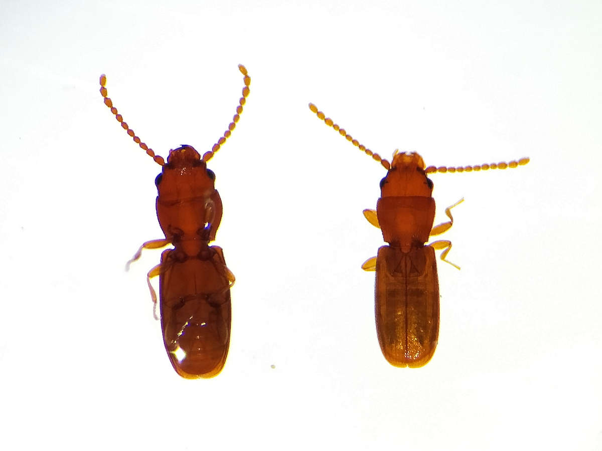 Respecto a los coleópteros, la principal plaga de los granos son los gorgojos del género Sitophilus (Dryophthoridae). Es una plaga primaria de este producto y su acción de degradación permite que detrás vengan otras especies de coleópteros, plagas secundarias. No me he entretenido en mirar la genitalia de los machos encontrados, por lo que podría ser Sitophilus oryzae o Sitophilus zeamais. Ambas especies tienen dos bandas claras sobre cada élitro y estos no están soldados como en el caso de Sitophilus granarius.