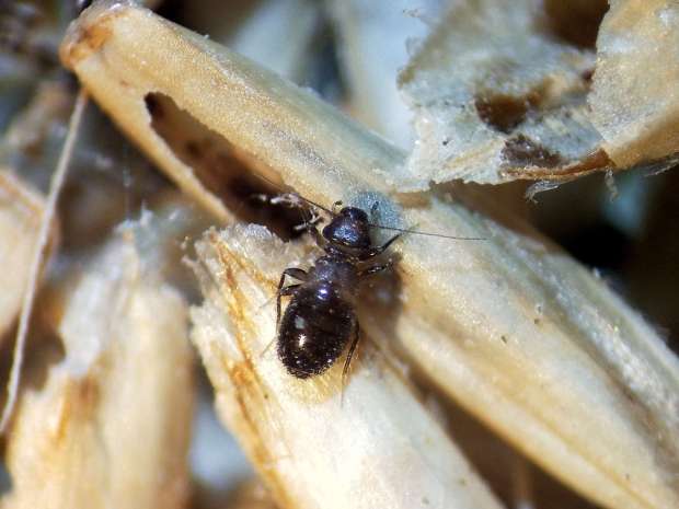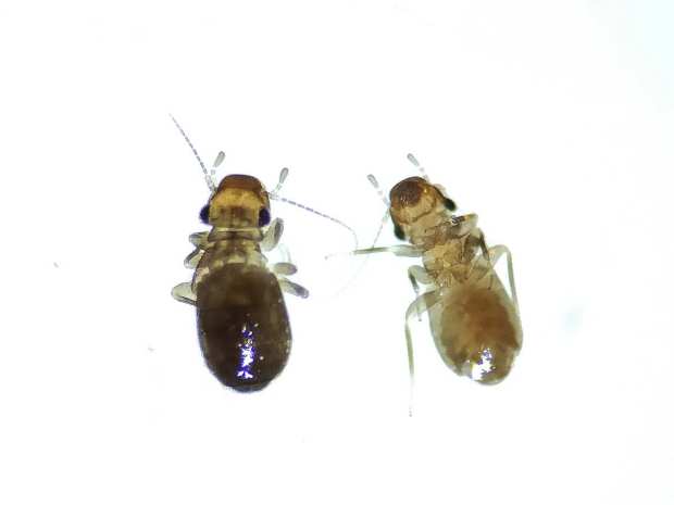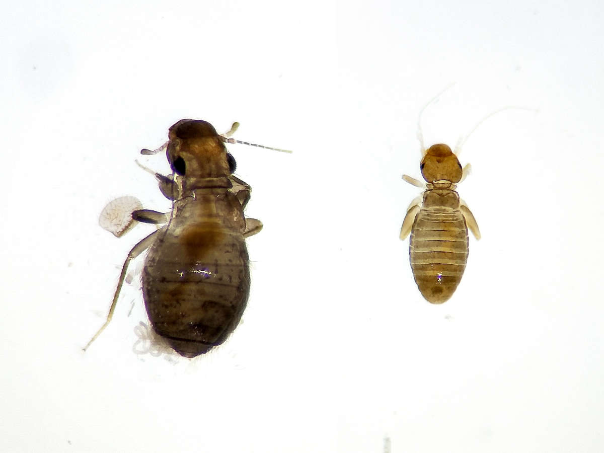 Capítulo a parte son los piojos de los libros, los psocópteros (Psocoptera). Son insectos que clasifico como de ubicuos. Allí donde haya un poco de humedad, los podemos encontrar. Son unos habitantes fijos de nuestras viviendas. Se apañan con lo que pillan. Solo piden un poco de humedad, lo cual no es difícil de encontrar en una cocina o baño. Pues bien, en la muestra he encontrado dos géneros, Lepinotus y Liposcelis. La mayor parte de individuos eran Lepinotus. Un ejemplar que he diseccionado me ha permitido saber que había Lepinotus reticulatus. Respecto a Liposcelis, desconozco la especie. Es un tema en el que algún día me meteré para poder identificar bien las diferentes especies que podemos encontrar en viviendas. Tenemos por lo menos seis especies de este género.