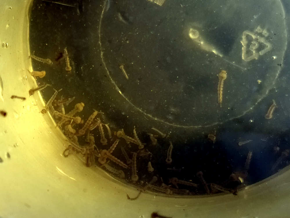 En el depósito de aguas pluviales de las imágenes encontré solo Culex pipiens en cuanto a representante de la familia de los culícidos. Aunque también encontré larvas de mosca del urinario (Clogmia albipunctata) [5].