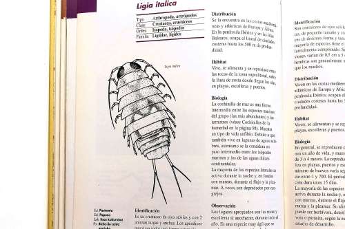 La guía ‘Animales de nuestras ciudades’ dedica una completa ficha a la Ligia (figura 2) [1]. Esta guía publicada en 1997 la tengo como referencia en cuanto a animales urbanos. Tengo varios libros de divulgación que tratan esta temática, pero sin duda esta guía es la mejor. Es extensa y con fichas bien trabajadas que describen las especies comunes en la Península Ibérica. Tiene además un buen nivel científico reflejo del nivel de sus autores.