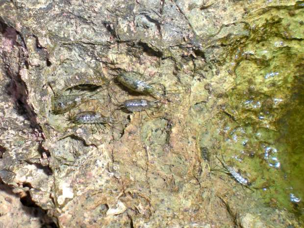 En la imagen número 1, se pueden ver varios ejemplares de Ligia italica, isópodo también conocido como cochinilla de mar [1]. La imagen fue tomada en Cala Morell, Menorca, en 2012. Guardaba imágenes de Ligia de entonces con la idea de dedicar una entrada a este interesante artrópodo común en la línea de costa. Pero no ha sido hasta ahora que me he decidido. Recientemente estuve en Calafat, Tarragona, donde me entretuve observando esta especie.