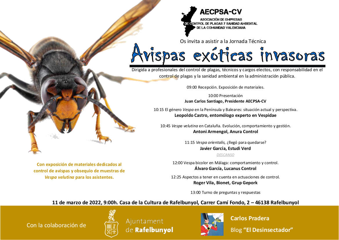 El pasado viernes 11 de marzo celebramos una jornada técnica que trató la problemática de las avispas invasoras del género Vespidae que tenemos en estos momentos en España. Se han dedicado muchas jornadas a la avispa asiática (Vespa velutina). Pero no se ha dedicado ninguna a la Vespa bicolor o a la Vespa orientalis. Pues bien, en esa ocasión se habló de todas ellas desde una perspectiva global.