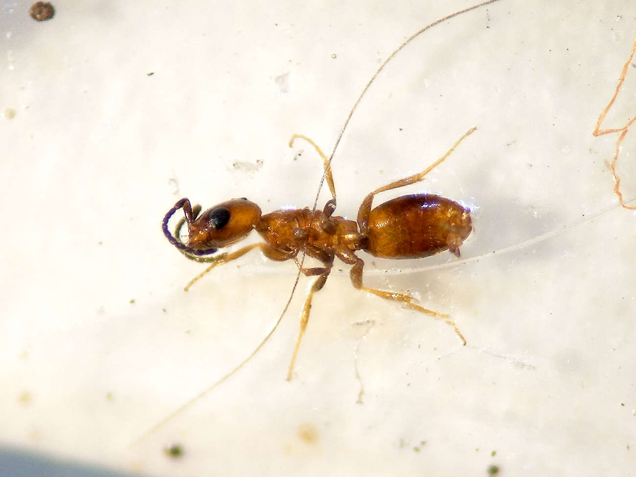 El caso de los betílidos encontrados, coinciden con la descripción dada por Kearns. En total hay 7 individuos, 4 machos y 3 hembras. Todos los machos son ápteros. Todas las hembras son iguales entre sí. Y también los machos. Así que se trataría de una misma especie que atribuyo a probable C. gallicola. En las imágenes siguientes de esta entrada, se pueden ver los 7 betílidos.