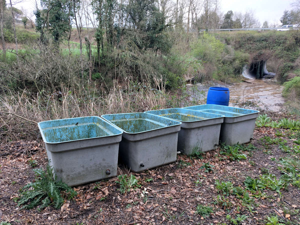 A mediados del pasado mes de abril encontré unas cisternas de fibra de vidrio en un huerto junto al río Gurri, en el término municipal de Taradell, Osona (figura 1). El huerto se encuentra cerca de la carretera BV-5305 que lleva a Sant Miquel de Balenyà, a 560 metros de altitud. Pasé por allí y bajé al río para ver si encontraba algún charco en el margen con larvas de Aedes vexans. No encontré lo que buscaba, pero sí dos cisternas con agua y larvas de mosquito (figura 2). Recolecté una muestra. A simple vista vi dos especies. Con la ayuda de la lupa de bolsillo observé que tenía Culex hortensis y alguna especie del género Culiseta. En casa, confirmé que solo había dos especies, Culex (Mailotia) hortensis y Culiseta (Culiseta) annulata.
