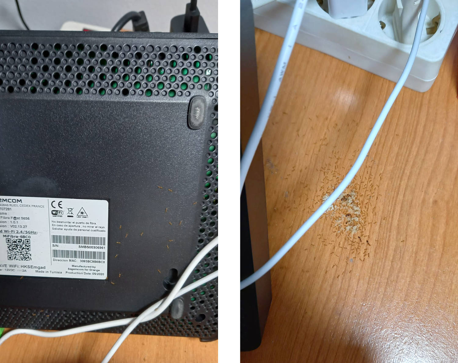 Fig 1. Colonia de M. pharaonis bajo un router./ 11-2021