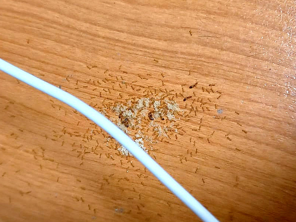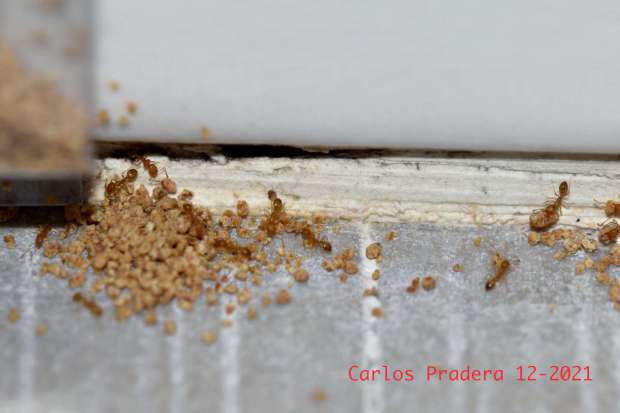 Fig 2. Detalle de la imagen de figura 1. Colonia de M. pharaonis bajo un router./ 11-2021