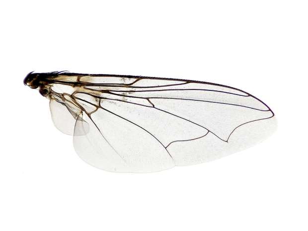 La otra especie de menor tamaño era más abundante. Tenía el tórax y el abdomen de color azul y verde. Se trata de Chrysomya albiceps, un califórido (Calliphoridae) común en cadáveres. En las imágenes 5 a 7 se puede ver detalle de esta especie, así como la imagen del ala. Hay otra especie del mismo género que también es común, Chrysomya megacephala [2]. Para diferenciar ambas especies basta mirar el color del espiráculo anterior, blanco en albiceps y oscuro en megacephala [3].