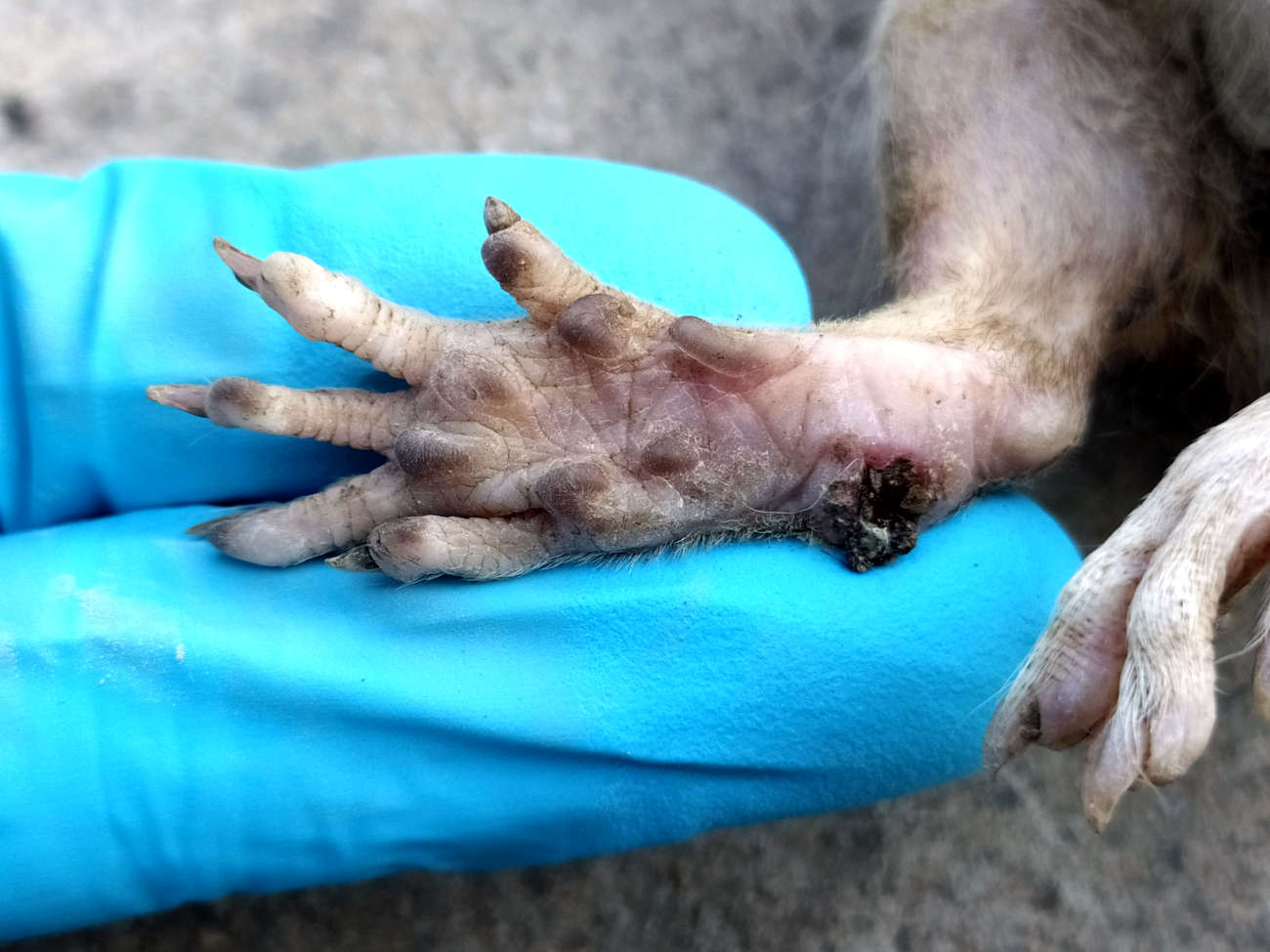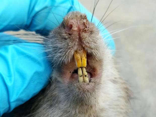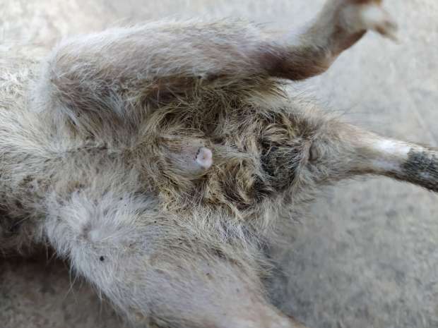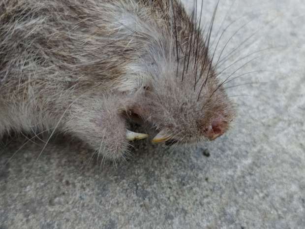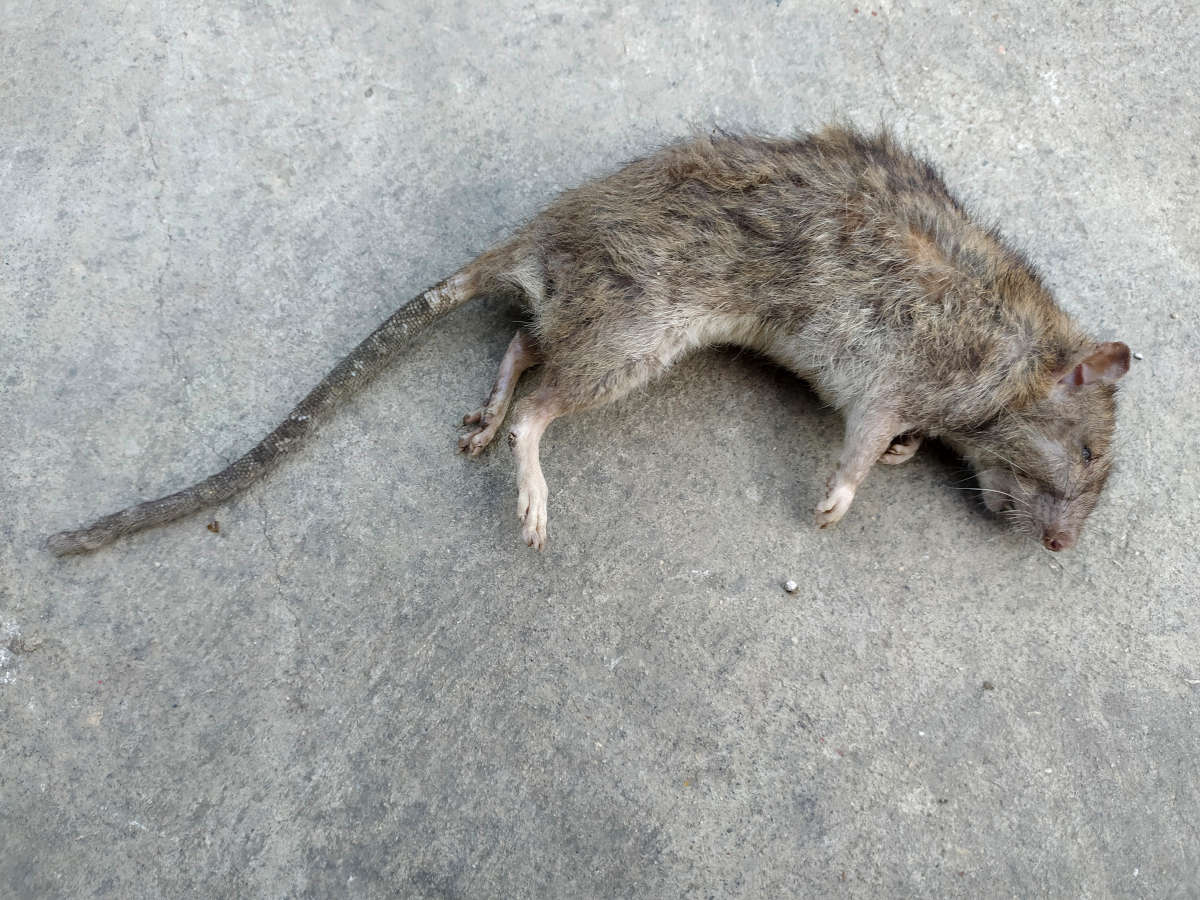 La parte buena de la situación es que encontré una rata muerta que parecía reciente (figura 5). Me acerqué y observé que estaba un poco tiesa, lo cual hacía pensar que llevaba horas. Entonces vi que tenía pulgas. Me puse contento. Fui rápido a buscar un frasco con alcohol para recolectar todas las que pudiera. Me sorprendió porque vi muchas. Al mover la rata algunas empezaron a saltar en todas direcciones. Recolecté 27, pero diría que otras tantas se escaparon. En la imagen número 1 se pueden ver las 27. Se distinguen bien los machos de las hembras. De hecho, las hembras estaban bien hinchadas, lo cual significa que están en plena dinámica de puesta de huevos.
