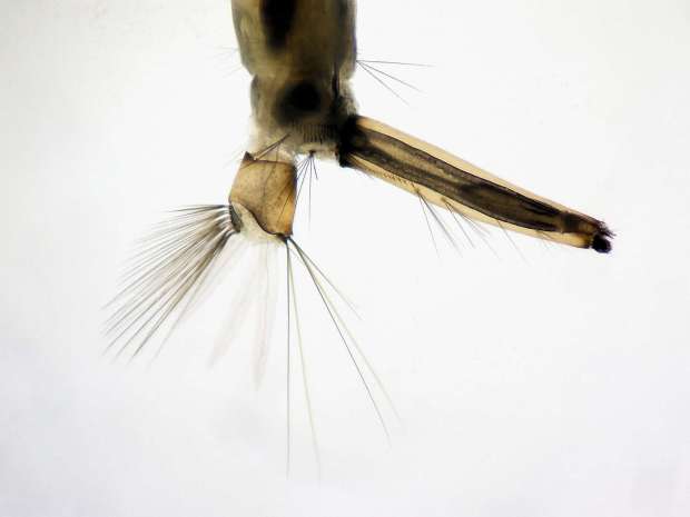 Observé dos especies de culícido, pero no me entretuve en mirar las larvas al detalle. Solo vi que había Culex y Culiseta. Dejé la muestra en el vehículo y allí quedó. En casa, acomodé las larvas en un eclosionador. Tenía Culex pipiens y Culiseta longiareolata (figura 6). Prácticamente la mayor parte de las larvas pertenecían a la primera especie. Había solo unas pocas larvas de la segunda.
