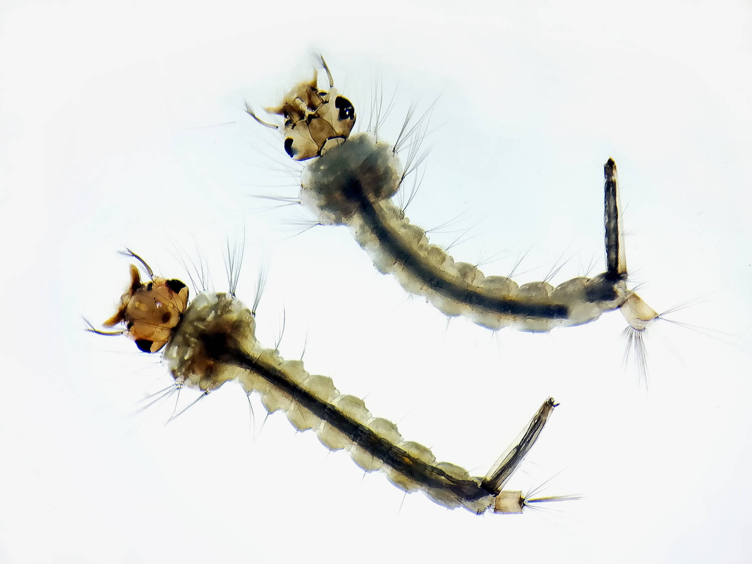 Observé dos especies de culícido, pero no me entretuve en mirar las larvas al detalle. Solo vi que había Culex y Culiseta. Dejé la muestra en el vehículo y allí quedó. En casa, acomodé las larvas en un eclosionador. Tenía Culex pipiens y Culiseta longiareolata (figura 6). Prácticamente la mayor parte de las larvas pertenecían a la primera especie. Había solo unas pocas larvas de la segunda.