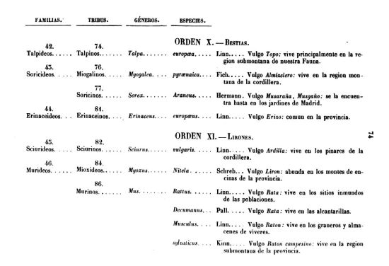 Catálogo metódico de mamíferos de la fauna matritense, 1851
