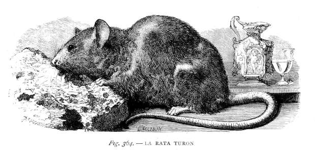 Fig 2. Grabado de la rata turón, Mus decumanus. Historia Natural de J. Vilanova Piera, 1872-1876.
