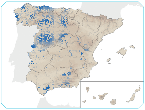 En primer lugar, para uso ambiental tenemos el fumigante Arvalin Phos (=Detia WM) de Detia Freyberg GmbH. Está formulado a base de fosfuro de aluminio técnico 68% con número de registro ES/MR(NA)-2014-14-00255 [4]. Según la Resolución de Autorización e Inscripción en el Registro de Biocidas, está autorizado contra dos Rattus norvegicus y Arvicola terrestris. En la resolución se nombra a la primera como «rata gris» y, a la segunda, como «topillo». Desde mi punto de vista, tenemos aquí un problema, puesto que el Ministerio de Sanidad parece lego en biología y la denominación «topillo» es errónea, ya que vulgarmente se le llama «rata topera». Y es por ello que puede haber un mal uso de Arvalin Phos utilizándose contra los verdaderos topillos, es decir, contra las especies del género Microtus. Como sabemos, Arvicola terrestris se encuentra en altitud en la parte septentrional de la península Ibérica (figura 3) [5].