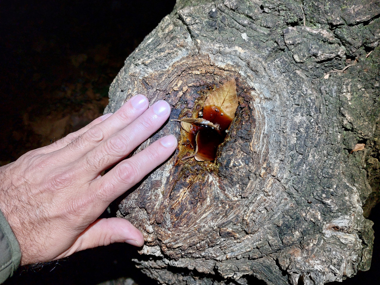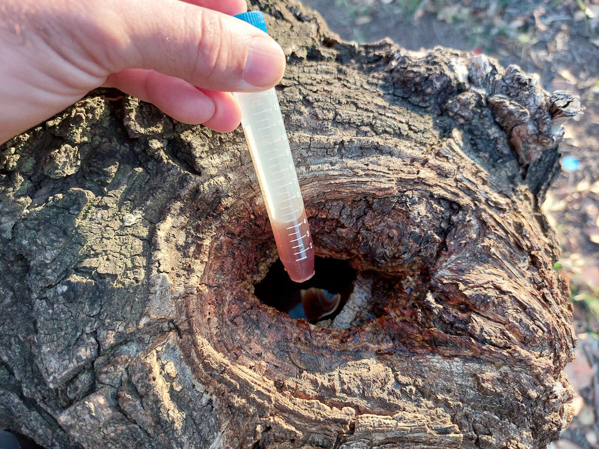 El hueco en los árboles donde se puede acumular agua se denomina dendrotelma. Hace unos años dediqué una entrada en este blog a una dendrotelma, ya que son espacios donde los mosquitos pueden completar su ciclo larvario [1]. Son muy interesantes de estudiar. Cuando encuentro una, miro si hay larvas de mosquito.