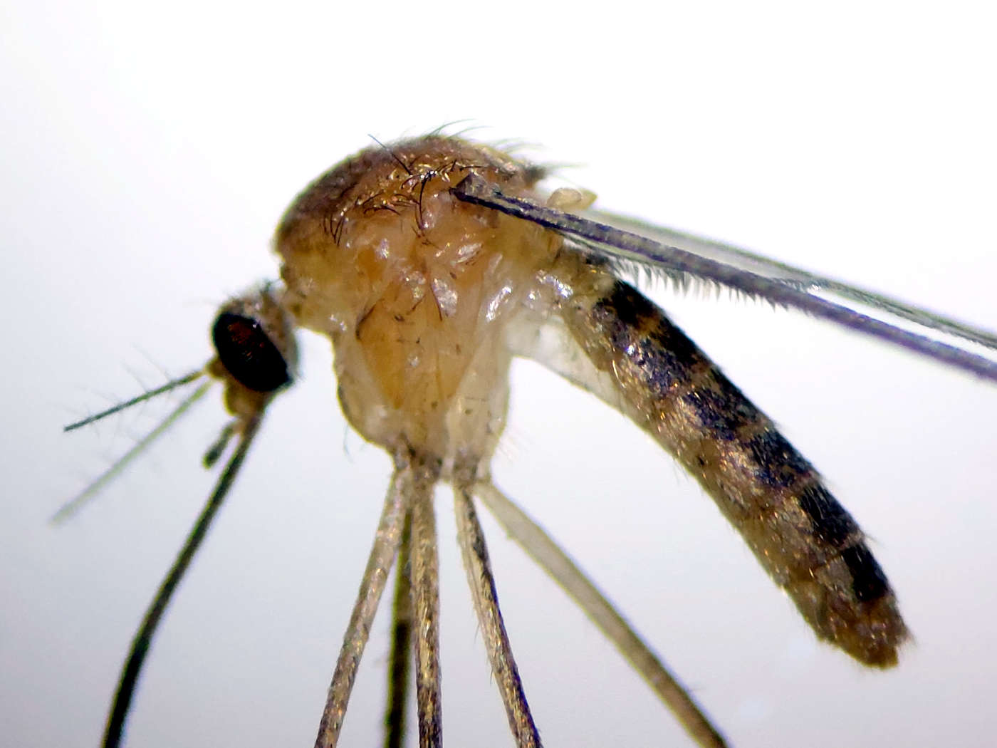 En las imágenes 10 a 13, se pueden ver hembras de Culex modestus a través de la lupa binocular. A pesar de ser una especie relativamente fácil de identificar, me aseguré con la ayuda de las claves y descripción de Becker et al. (2020) [4]. Culex modestus pertenece al subgénero Barraudius que se diferencia de otros subgéneros de Culex porque la tibia de las patas posteriores es más larga que el primer tarsómero (figuras 10 y 12).