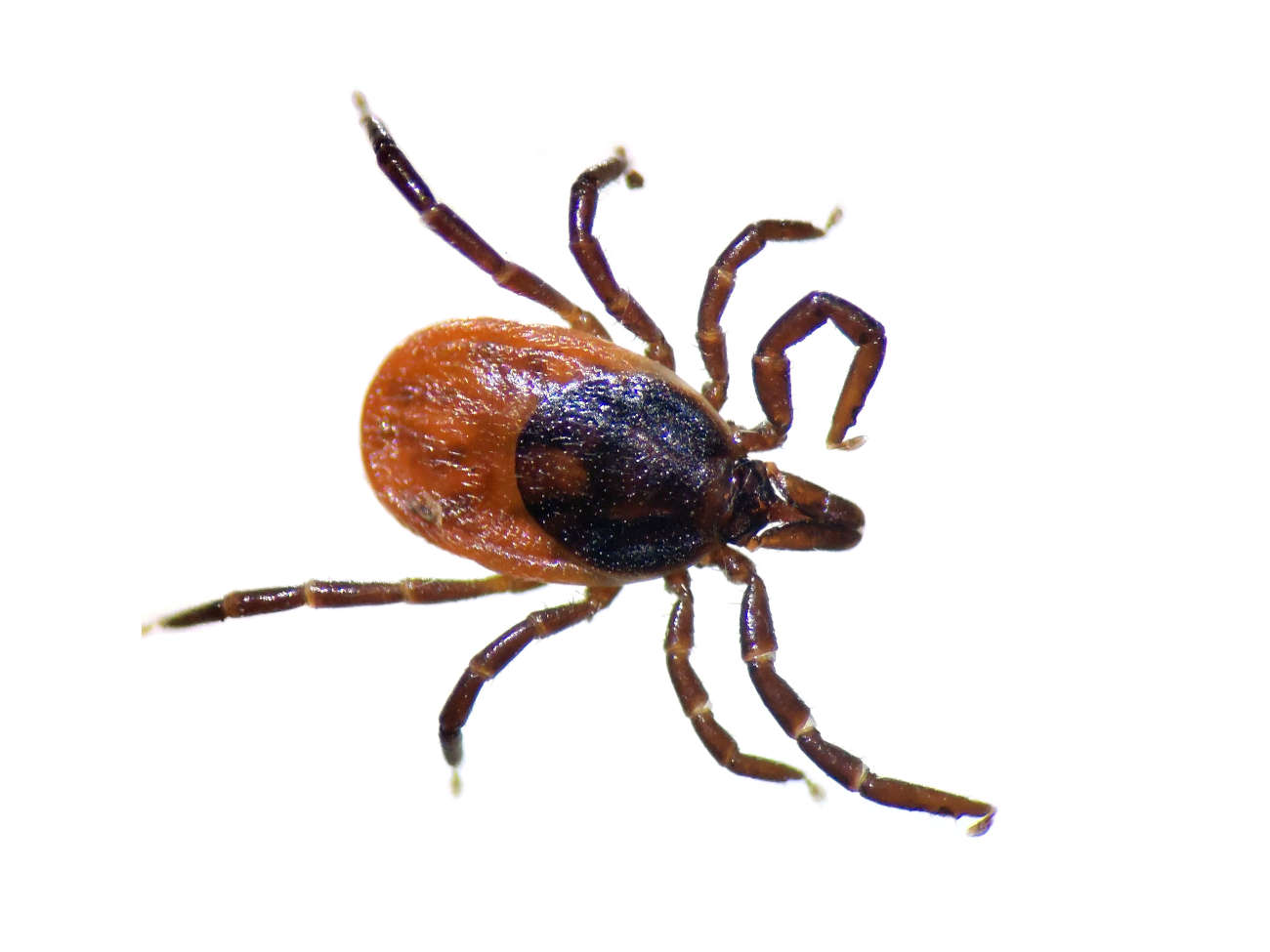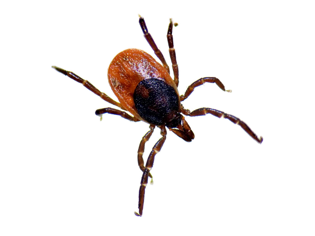 He de apuntar que el género Ixodes es fácil de identificar por la forma de su capítulo. Pero la hembra de Ixodes ricinus lo es más, por el color rojo del dorso y su característica pilosidad. Aunque ver los adultos de esta especie es más propio del otoño, también se pueden encontrar en primavera y verano [3]. Es una especie que necesita un paisaje húmedo con vegetación que retenga la humedad [2]. La alta montaña es un lugar ideal para una especie que aguanta los rigores del invierno. De hecho, el cambio climático es desfavorable, justo lo contrario que sucede con las especies del género Hyalomma.