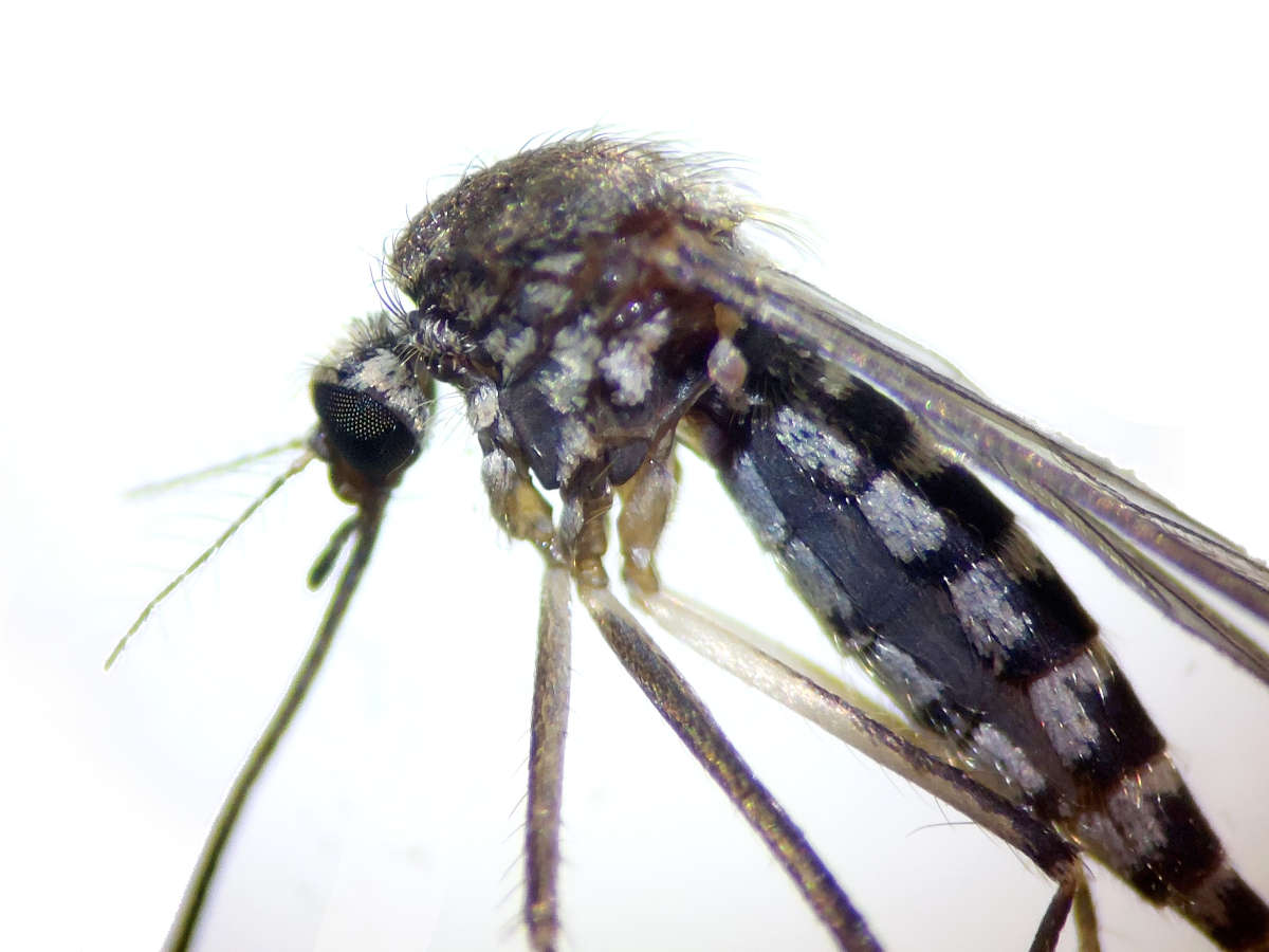 En total cacé tres hembras que resultaron ser de Aedes vexans. En casa los observé con la lupa binocular y tomé unas fotos bien claras que publico para que sirvan de testimonio (figuras 4-7) [1]. En 2016, encontré esta especie en Cruïlles, Girona. Desconocía esta especie y también vino al acecho. Entonces era octubre cuando esta especie ha completado varios ciclos durante el verano debido a las lluvias. Pero a diferencia de otras especies que se adaptan a cualquier tipo de recipiente, Aedes vexans cría en charcos temporales junto a ríos como producto de crecidas o simplemente de lluvias. Las hembras hacen la puesta en las riberas o meandros, sobre suelos arcillosos en los que hay una abundante vegetación que depende del agua [2]. La crecida del nivel del agua inunda estas zonas y permite su desarrollo. Parece que los huevos eclosionan cuando el agua alcanza los 9ºC. Dato importante, pero impresiona más el hecho de que los huevos pueden sobrevivir hasta 5 años [3].