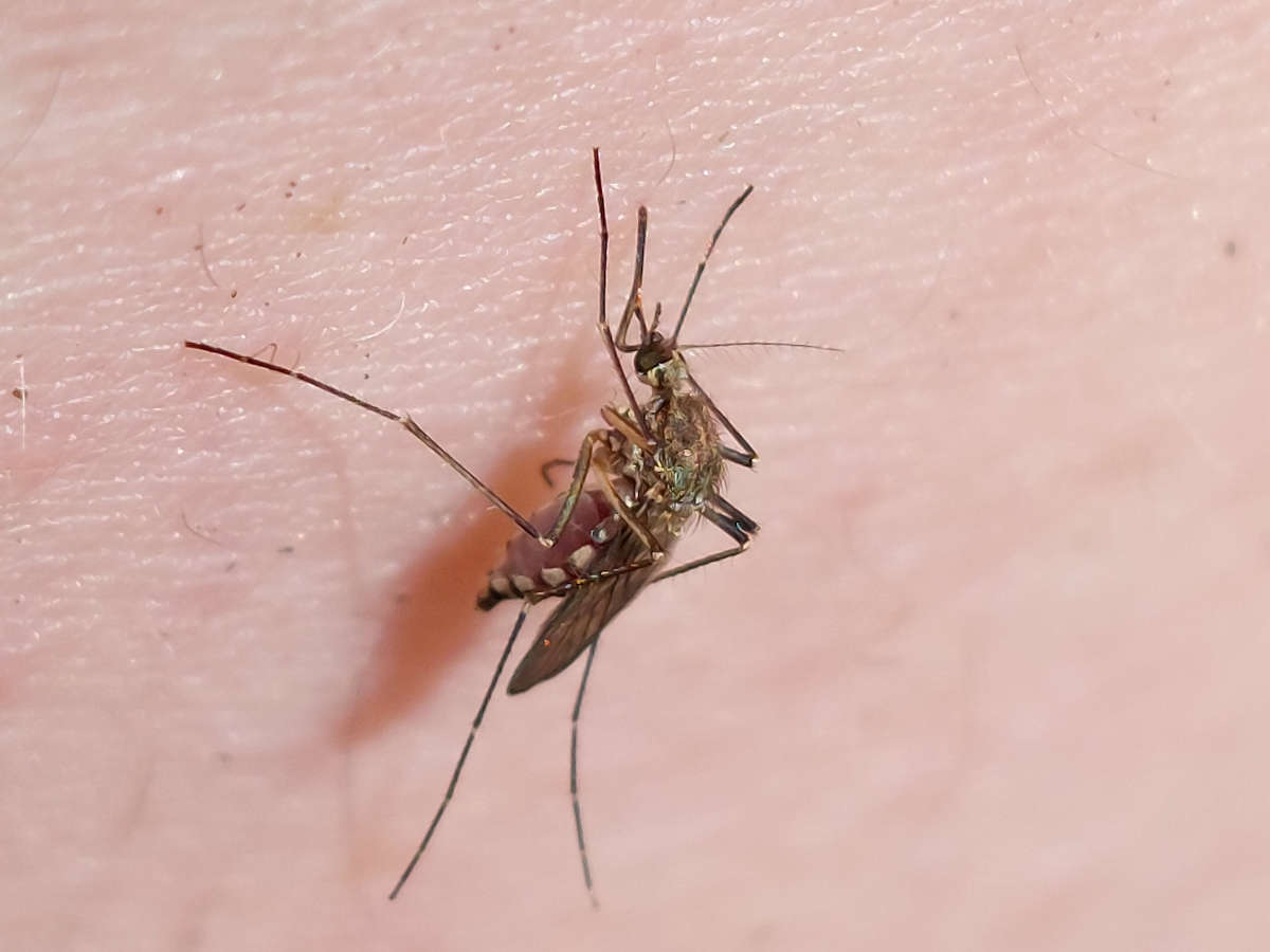Recientemente estuve unos días en el Pallars Sobirà, Lleida. Una tarde la pasé en la Guingueta d’Àneu, pequeña población que se encuentra sobre los 900 metros de altitud. Paseando por un camino junto a los Aiguamolls de la Torrassa, sobre las 17 horas, vinieron al acecho varias hembras de mosquito (figura 1). Principalmente fueron a por mi mujer. Una de ellas se posó sobre su pierna, lo cual dio pie a que pudiera tomar unas fotos con el móvil (figura 3). Pude ver que se trataba de alguna especie del género Aedes. En este punto, no puedo dejar de agradecer la paciencia y capacidad de observación que tiene mi mujer. Muchos bichos interesantes los detecta ella.