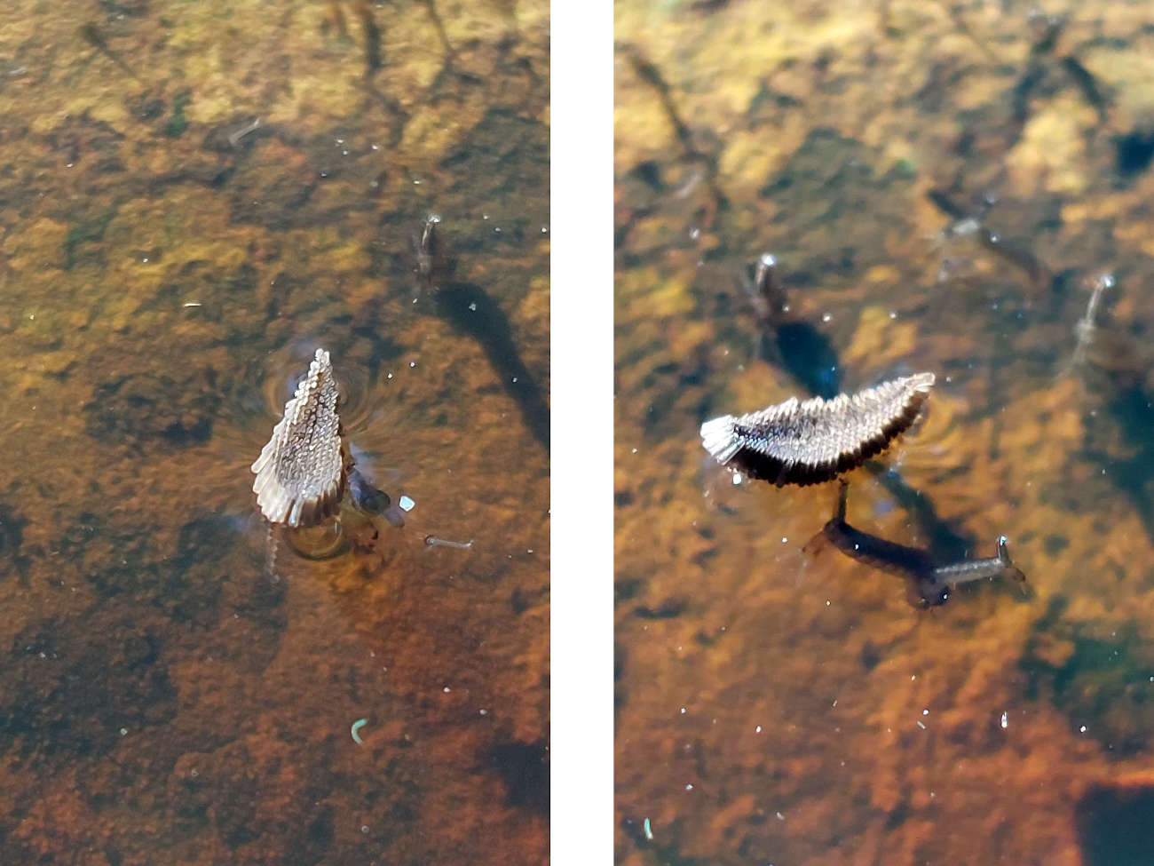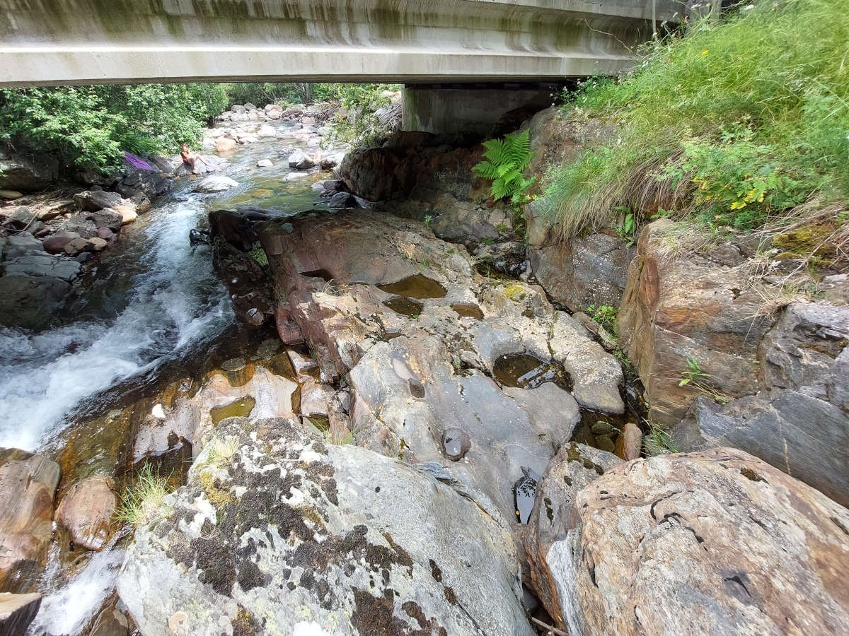 Además de las dos especies citadas, en otro valle del Pallars, el Valle de Cardós, encontré dos especies más comunes. En las Bordas de Quanca, núcleo de casas a 1370 m de altitud que pertenecen al municipio de Lladorre, encontré un charco con Culex pipiens y Culiseta longiareolata. Esto fue junto al río Escobes bajo el puente de la carretera que sube hasta las pistas de esquí (figura 12). Estuve mirando todos los charcos de esa zona y solo vi larvas en dos que tenían mayor exposición al sol (figura 13).