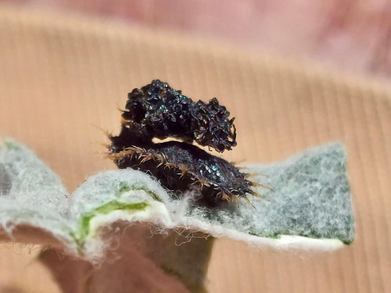 Y para acabar, apuntar que en el ibón de Bernatuara a 2.200 metros encontré unas simpáticas larvas de Cassida sobre un cardo (figuras 33-36). Se trata de un coelóptero de la familia Chrysomelidae de gran belleza cuyas larvas se camuflan bajo sus propios excrementos. En la península es conocida la especie Cassida deflorata que afecta el cultivo de la alcachofa.