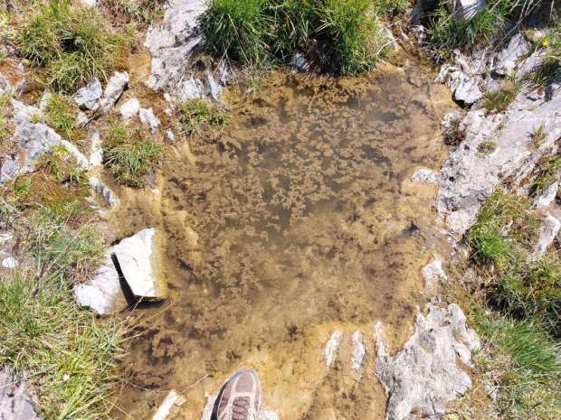 Fig 4. Charco grande con larvas de Culex hortensis a 1.650 m de altitud junto al río Ara./ C. Pradera 08-2022