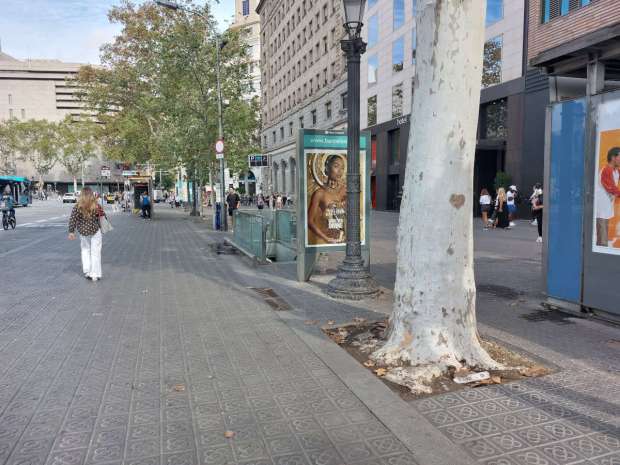 Por supuesto, esta céntrica plaza de Barcelona es un lugar ideal para esta especie. Quizás no tenga muchos artrópodos que capturar, pero tiene un montón de restos de comida por todas partes, ya que está llena de personas, especialmente turistas, a todas horas. Además, hay árboles donde pueden encontrar alimento. Sabemos que busca las secreciones de pulgones y áfidos [6]. La mayor densidad de obreras estaba en los plátanos de sombra (Platanus x hispanica) que quedan al este de la zona ocupada (figura 6).